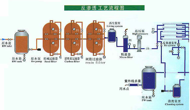 用反渗透设备,处理工业用纯水,不耗用大量酸碱,无二次污染,它的运行费用也比较低。用反渗透方法处理的水,纯度高,它不但能去除离子范围的杂质,还能去除有机污染物、微生物、病毒和热原质等,用其它方法难去除的杂质。
