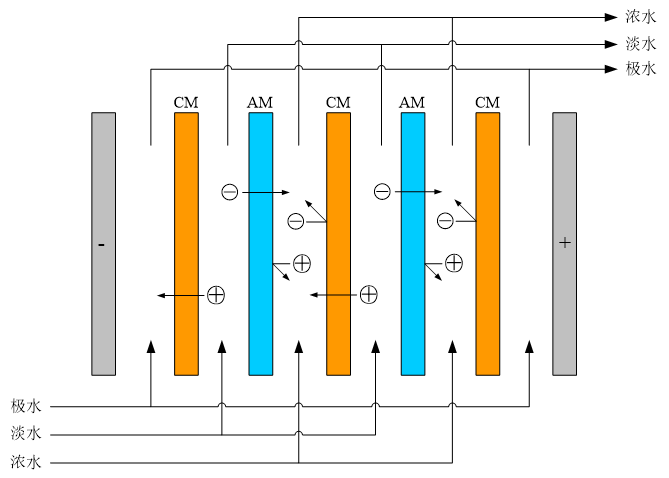 电渗析(ED)是一种以直流电为推动力,利用阴阳离子交换膜对水溶液中阴阳离子的选择透过性,使一个水体中的离子通过膜迁移到另一水体中的物质分离过程。